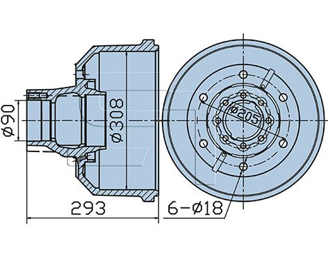 Navboringsdiameter [mm]: 92 mmMonteringsside: bagakselBremse distance [mm]: 132 mmDiameter [mm]: 308 mmHøjde [mm]: 293 mmBoringsdiameter [mm]: 18 mmGevindmål: M 12Antal huller: 6Pitch cirkel-Ø [mm]: 205 mm