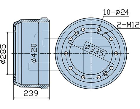 Antal huller 1: 2Navboringsdiameter [mm]: 285 mmMonteringsside: forakselBremse distance [mm]: 187 mmDiameter [mm]: 420 mmHøjde [mm]: 239 mmBoringsdiameter [mm]: 24 mmGevindmål: M 12Antal huller: 10Pitch cirkel-Ø [mm]: 335 mmBoringsdiameter 1 [mm]: 14 mm